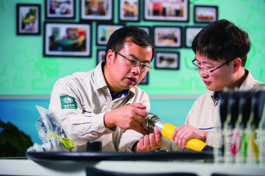谢邦鹏与同事一起改良电力设备